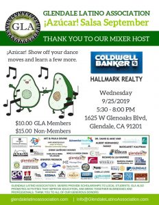 Join us for our GLA Azucar and Salsa September Mixer!!! Come on over for some great music, friends and food all in support of our Scholarship Fund. Thank you to our mixer host Coldwell Banker Hallmark Realty Join us on Wednesday, September 25th, 2019 at 5:30 pm Admission: $10.00 GLA Members $15.00 Non-Members Come network with your fellow GLA friends and family. Friends please consider bringing a raffle prize and attach your business card for maximum exposure! Let's have fun…